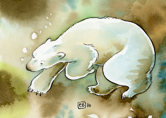 Another late night postcard keeping school visits, coaching, and drawing and other work efforts in relative balance... and I thusly have no problem with the "tired" theme for this #inktober2016 contribution. A worthwhile effort -- and now I'm off to bed! #goodnight #inktober #saveourseaice