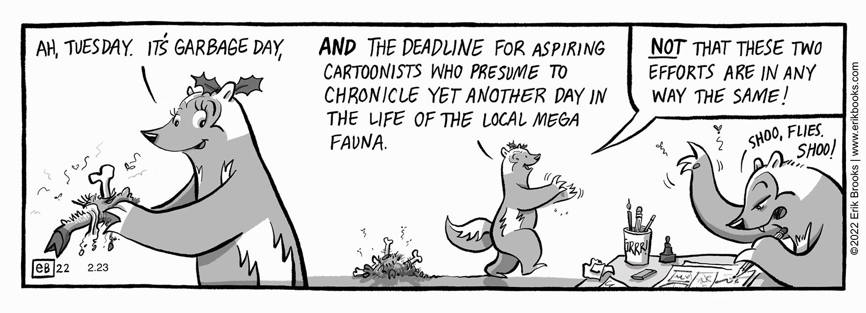 On rare occasion, these comics fall to a level of junior high discourse. In the best of all innocent, bodily function, kinds of ways. Let it sink in and don't' hold back the smile :)